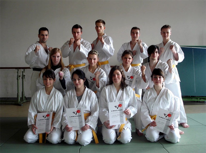 09.03.2009 Am 03.03.2009 legten 12 Schülerinnen und Schüler der Sekundarstufe II der Heinrich-Hertz-Schule erfolgreich ihre Prüfung zum 8. Kyu (gelber Gürtel) im Karate ab. Die Schülerinnen und Schüler der Oberstufe betreiben seit Beginn des Schuljahres 2008/2009 Karate als Einzelsportart und haben sich im Unterricht intensiv auf diese Prüfung mit ihrem Lehrer Herrn Samad Azadi vorbereitet.