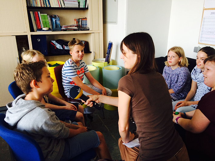 Nach den ersten Mikro- und Sprechproben legt sich langsam die Anspannung und es entsteht zusammen mit Frau Hielscher vom NDR eine anregende und interessante Gesprächsatmosphäre. Die Zeit vergeht wie im Flug. Ganz anders als in so mancher Unterrichtsstunde erleben die Kinder einen Schulstart, der wohl noch lange in ihrem Gedächtnis bleiben wird.