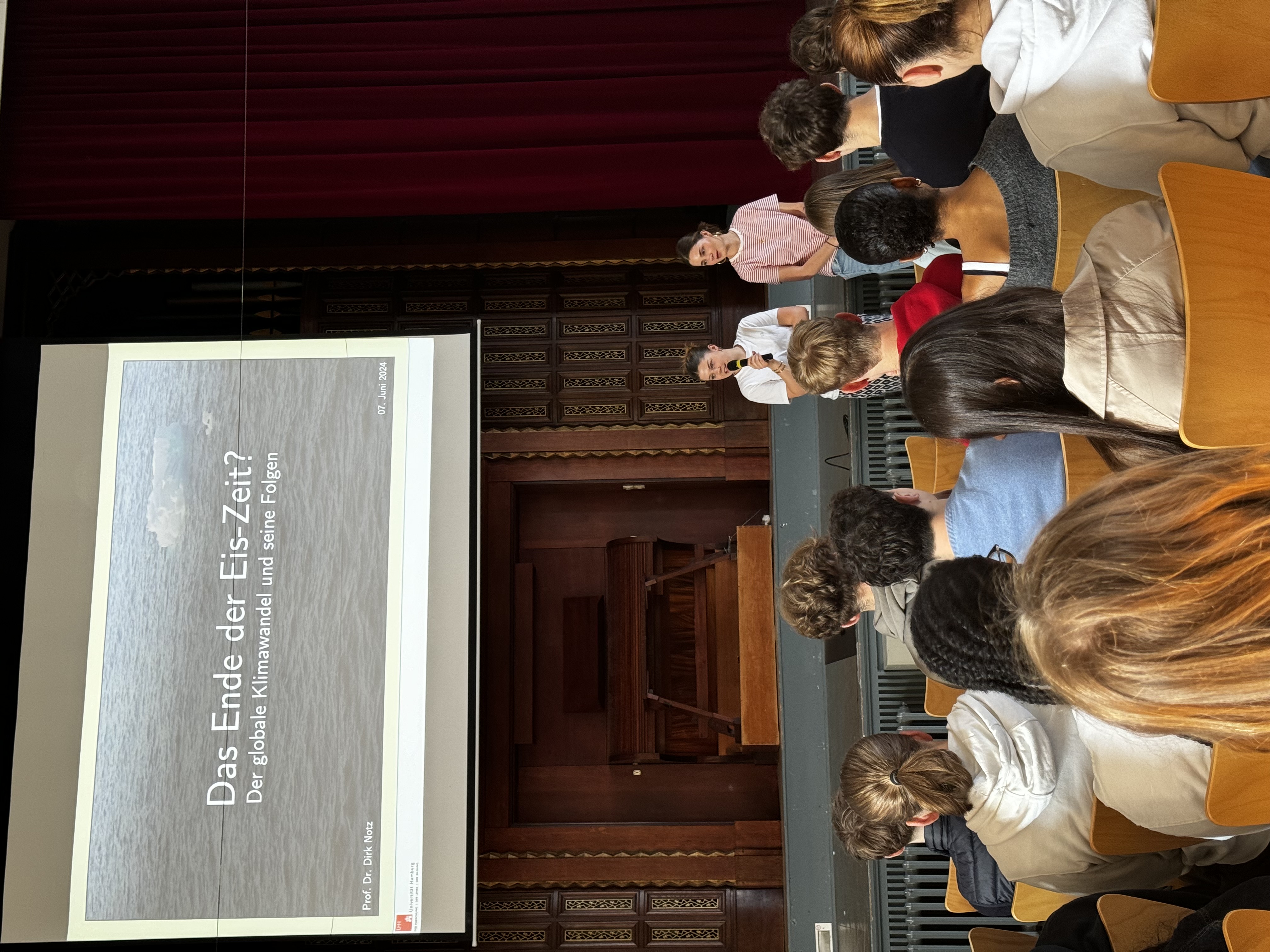 03.07.2024 Am Welttag der Ozeane kam dieses Jahr die gesamte S2 in der Aula zusammen, um sich über den Klimawandel und seine Auswirkungen auf Meere und Menschen zu informieren. Prof. Dr. Dirk Notz, ein renommierter Experte im Bereich Klimaforschung, hielt einen Vortrag über den Klimawandel und veranschaulichte anhand von Meereis, wie stark die Erderwärmung unseren Planeten beeinflusst.